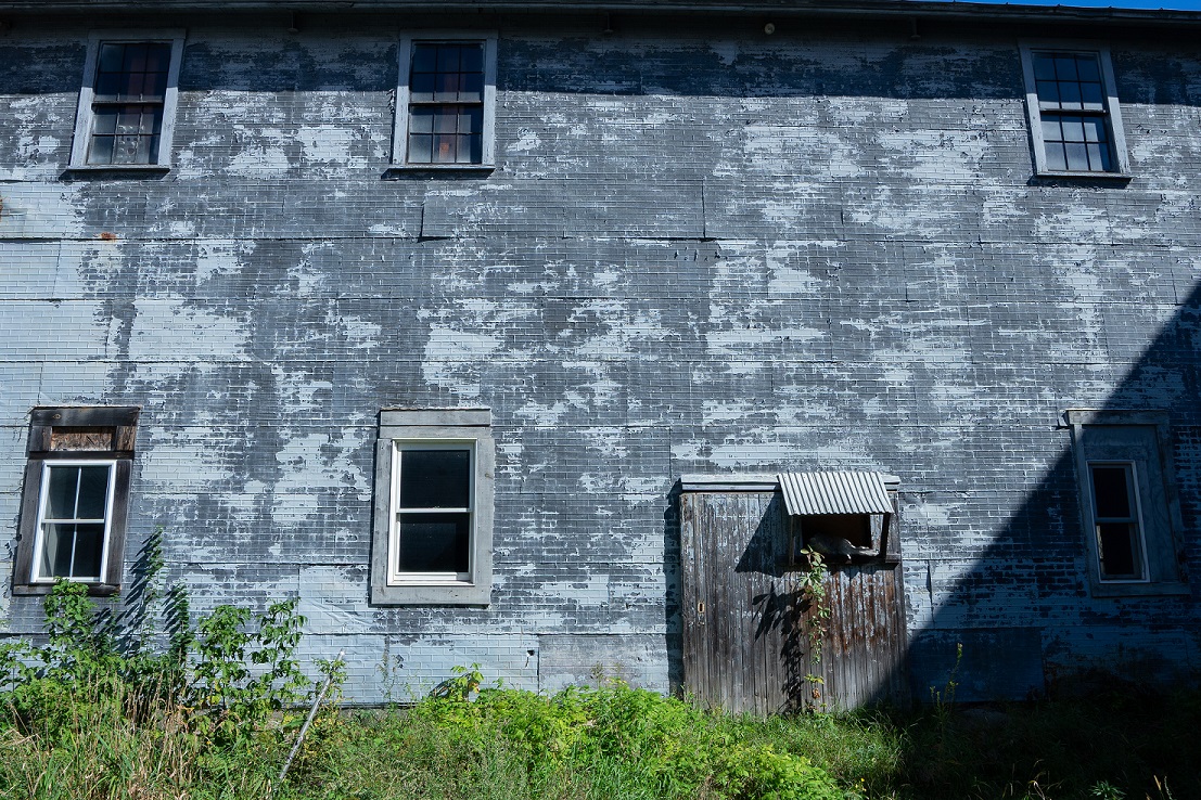 The prototype photo below shows this material applied to the side of an industrial building. The brick-scribed tarpaper panels measure approximately 60"x26" on the prototype.