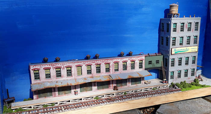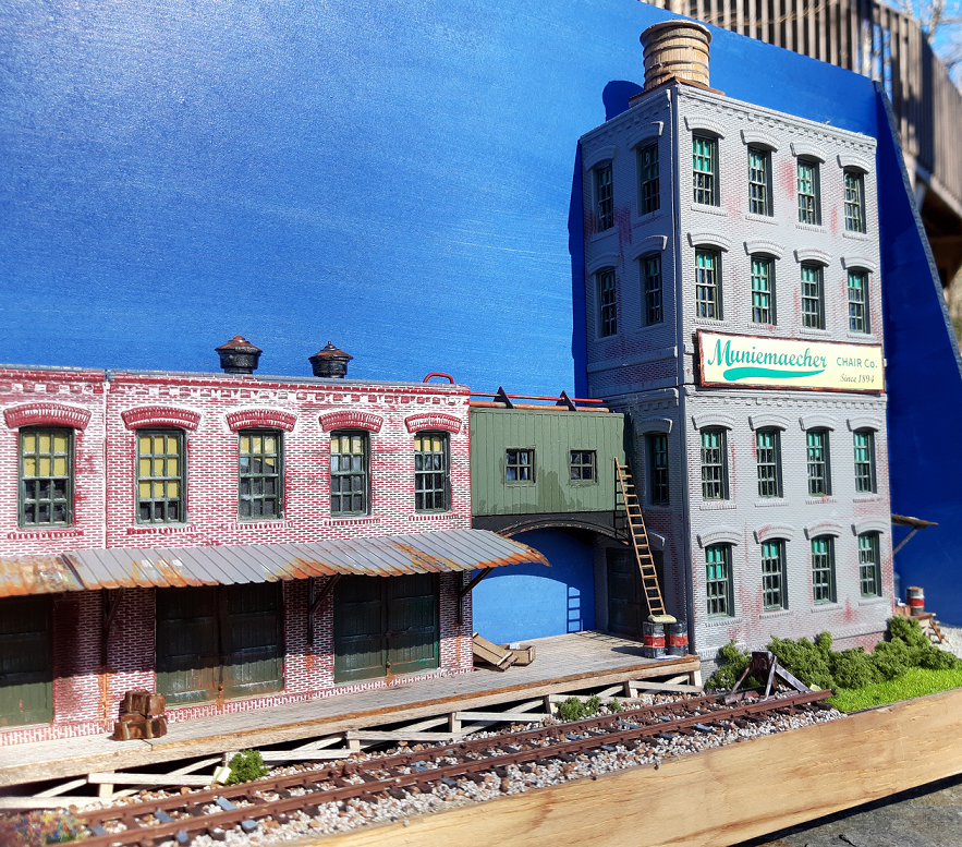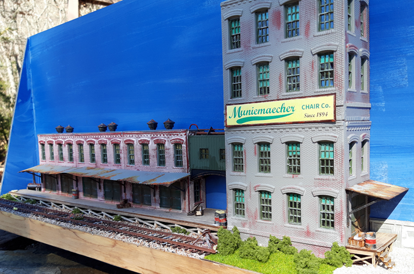 The MunieMaecher Chair Co structure depicts a large brick industrial building that houses a furniture manufacturing company. The structure is designed as a background kit that will set nicely against a backdrop of your railroad layout. Of course, the structure can depict any other manufacturing or warehousing business that suits your needs.